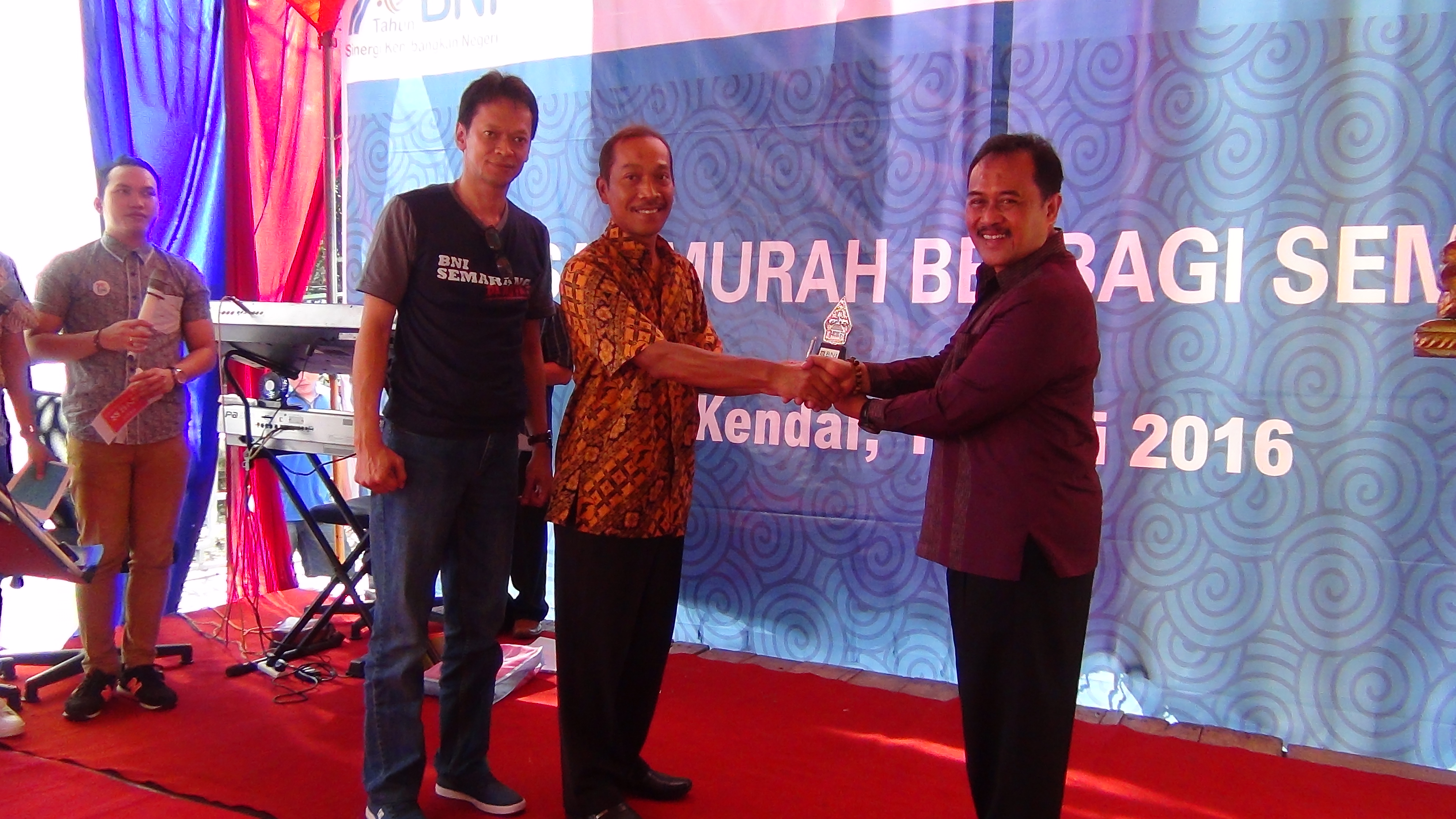 Kendal -Merayakan ulang tahunnya yang ke 70 PT Bank Negara Indonesia( Persero )tbk, menggelar rangakian pasar murah berbagi sembako BNI yang berlokasi di 70 titik, yang tersebaqr di 34 propinsi seluruh indonesia.Rangkaian Program Pasra Muarah berbagi Sembako digelar di Kabupaten Kendal, dihalaman kantor BNI KCP Kendal.Sabtu( 11/6) dibuka oleh Sekda Kendal Ir Bambang Dwiyono,MT dan HNS BNI Wilayah Semarang M.Harsono.