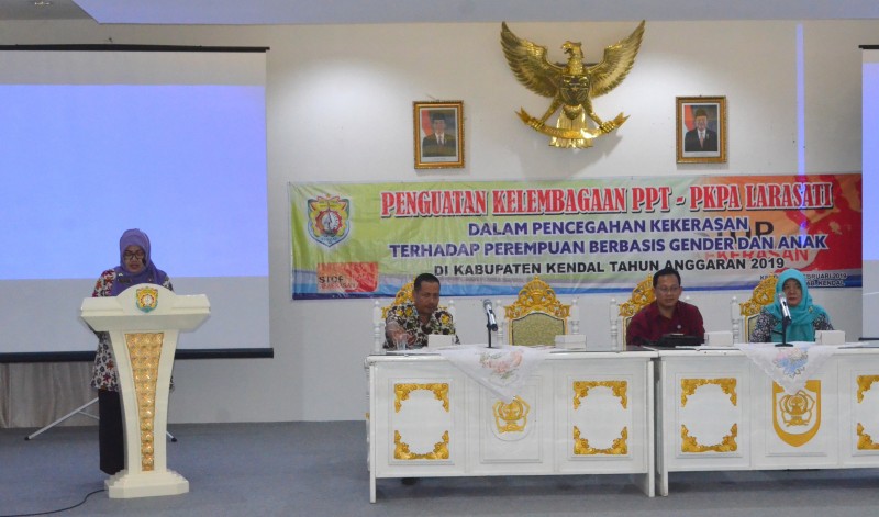 Kendal- Dinas Pengendalian Penduduk, Keluarga Berencana, Pemberdayaan Perempuan dan Perlindungan Anak (P2KBP2PA) Kabupaten Kendal menyelenggarakan kegiatan penguatan kelembagaan PPT-PKPA Larasati tentang pencegahan kekerasan terhadap perempuan berbasis gander dan anak tahun anggaran 2019, Kamis (28/2/2019) bertempat di Operation Room 2 Kabupaten Kendal, Jawa Tengah.