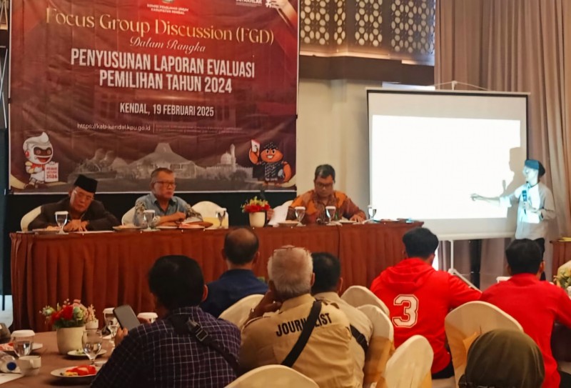Kendal- Komisi Pemilihan Umum (KPU) Kendal menggelar Forum Group Discussion (FGD) Penyusunan Laporan Evaluasi Pemilihan Tahun 2024, Rabu (19/2/2025) di Sae Inn Kendal.