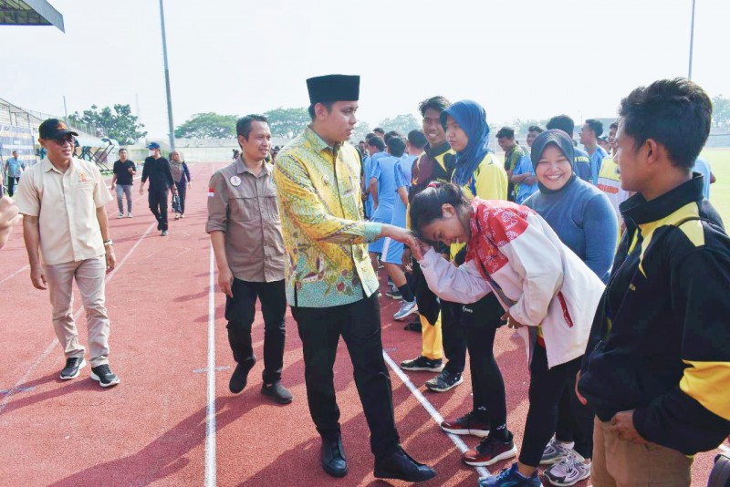 Kendal - Bupati Kendal, H. Dico M. Ganinduto, B.Sc., cek kesiapan dan kesehatan para atlet yang akan mengikuti Pekan Olahraga Provinsi (Porprov) Jawa Tengah, Sabtu (20/5/2023) di Stadion Utama Kebondalem Kabupaten Kendal.
