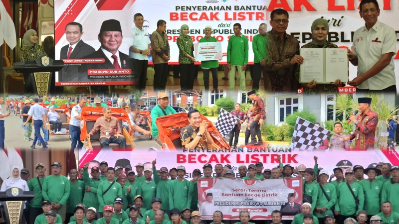 Kendal- Sebanyak 140 orang pengayuh becak di Kabupaten Kendal menerima bantuan Becak Listri dari Presiden Republik Indonesia, H. Prabowo Subianto, Selasa (11/11/2025) di Pendopo Tumenggung Bahurekso Kendal.