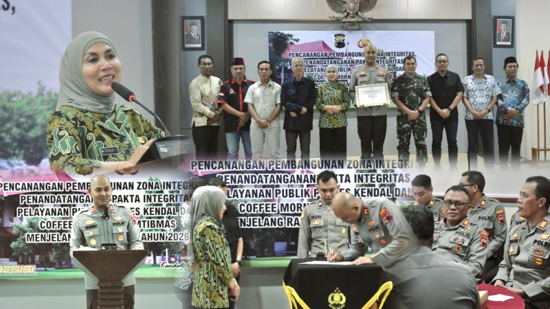 Kendal- Polres Kendal mencanangkan Pembangunan Zona Integritas dan Penandatanganan Pakta Integritas Pelayanan Publik Tahun 2026, serta Coffee Morning Kamtibmas Bulan Suci Ramadhan, Jumat (23/1/2026) di Ruang Rapat Polres Kendal.