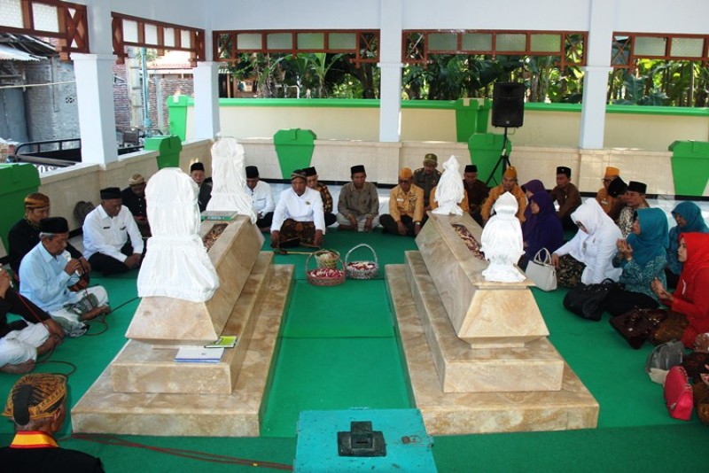 KENDAL - Dalam rangka menyambut Hari Jadi Kabupaten Kendal ke 413, jajaran Pemkab Kendal bersama Karabat Karaton Surakarta Wilayah Kendal berziarah di Makam Wali Gembyang Kelurahan Patukangan Kota Kendal, Rabu (25/7/2018).