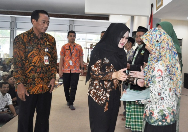 Kendal ~ Bupati Kendal, dr. Mirna Annisa, M.Si, didampingi kepala Dinas Pendidikan dan Kebudayaan Kabupaten Kendal menyerahkan uang kegiatan penunjang secara simbolis kepada 1.886 guru MDA dan TPQ Kabupaten Kendal, (8/6),...