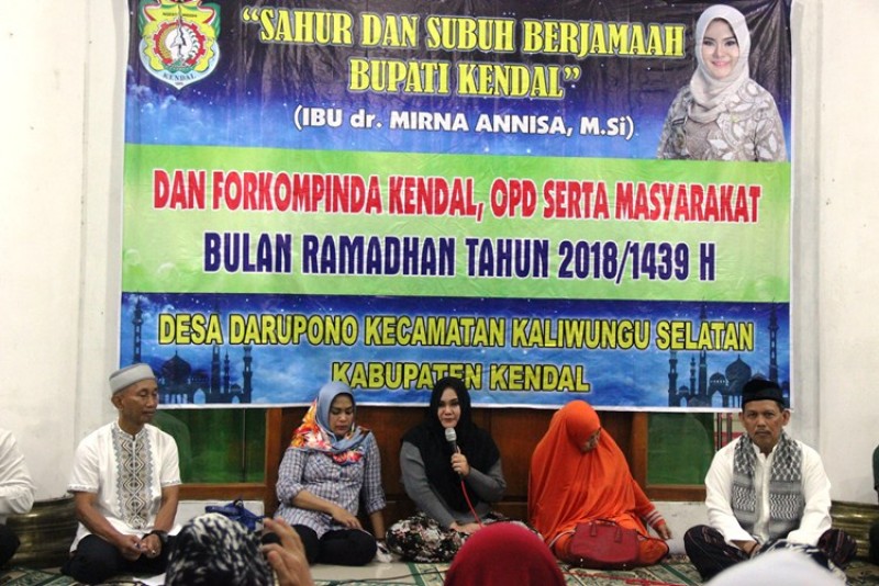 KENDAL - Bupati Kendal dr. Mirna Anissa, MSi dalam kegiatan Sahur Bersama dan Sholat Subuh Berjamaah Forkopimda, Kamis (31/5/2018) di Masjid Darusalam Desa Darupono, menjawab pertanyaan warga, mantan ketua DPRD Kendal Trimo...