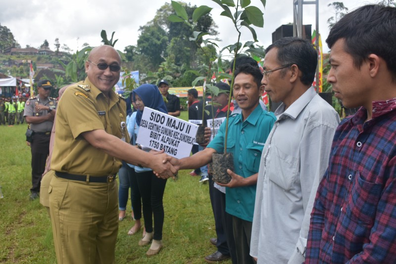 KENDAL - Wakil Bupati Kendal Drs. Masrur Masrur, Selasa (27/3) di lapangan Desa Bringinsari Kecamatan Sukorejo, menyerahkan secara simbolis bantuan bibit Alpukat sebanyak 8000 buah dan durian sejumlah 2000 batang. Wabup...
