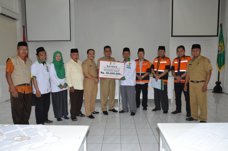 KENDAL - 20 keluarga korban bencana banjir di Desa Protomulyo dan 4 keluarga korban bencana longsor di Desa Kedungsuren Kecamatan Kaliwungu Selatan menerima bantuan dari Badan Amil Zakat Nasional (Baznas) Provinsi Jawa Tengah.