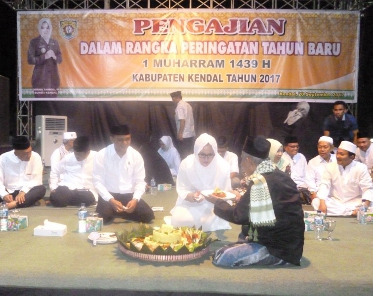 Bupati Kendal dr Mirna Annisa MSi bersama Forkopimda, para pejabat, tokoh masyarakat, ulama dan masyarakat melakukan doa bersama menyambut Tahun Baru Islam 1 Muharram 1439 H pada Rabu malam (20/09) di Alun-alun Kendal. Tampak...