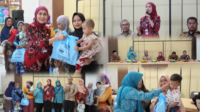 Kendal- Bupati Kendal serahkan serahkan bantuan Subsidi Harga Pangan untuk Keluarga dengan Balita Berisiko Stunting di wilayah Kecamatan, Selasa (8/7/2025) di Balai Desa Bangunsari Kecamatan Patebon.
