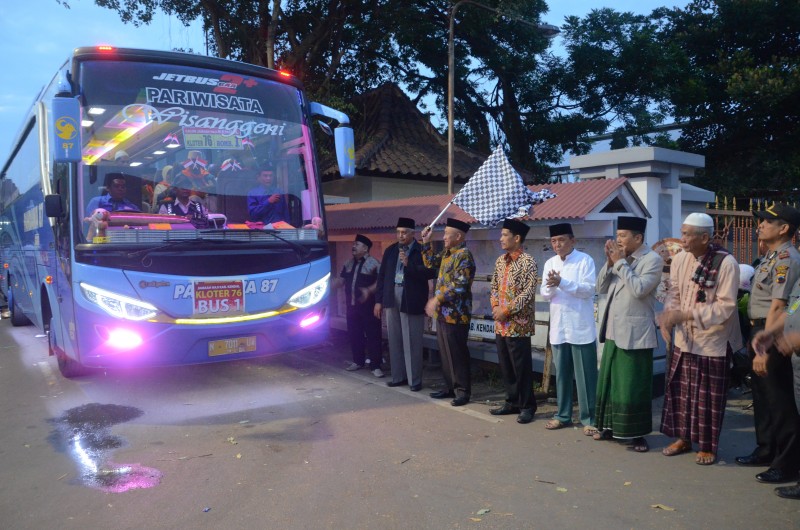 Kendal - calon Jamaah haji asal Kendal yang masuk dalm Kelompok terbang (kloter) 76 Dilepas oleh wakil Bupati Kendal Masrur Masykur, Sabtu (19/8) pagi di Pendopo Agung Kabupaten Kendal. Kloter 76 ini terdiri 355 Calon haji...