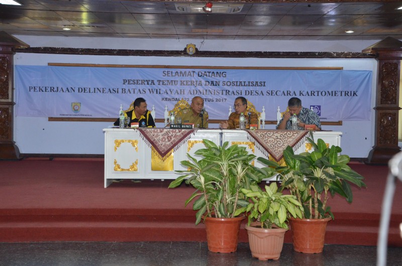 Kendal - Pemerintah Kabupaten Kendal menggelar Temu Kerja dan Sosialisasi Delineasi Batas Desa/Kelurahan di Kabupaten Kendal di pendopo Agung Kabupaten Kendal, Selasa (22/8)pagi. Hadir dalm acara tersebut Bupati Kendal yang...