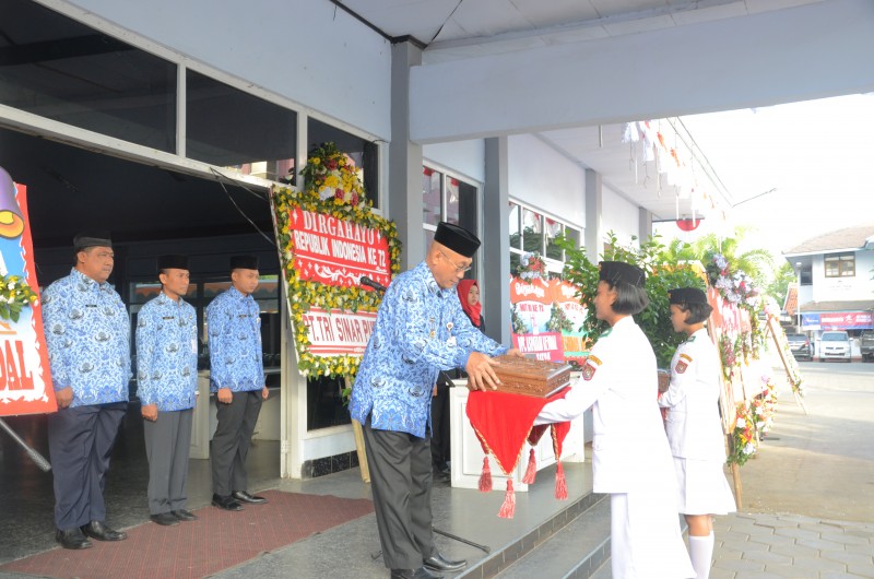 KENDAL - Pemerintah Kabupaten Kendal menggelar upacara penyerahan duplikat Bendera Pusaka merah putih kepada Pasukan Pengibar Bendera Pusaka, Kamis (17/8) di Pendopo Pemkab Kendal.