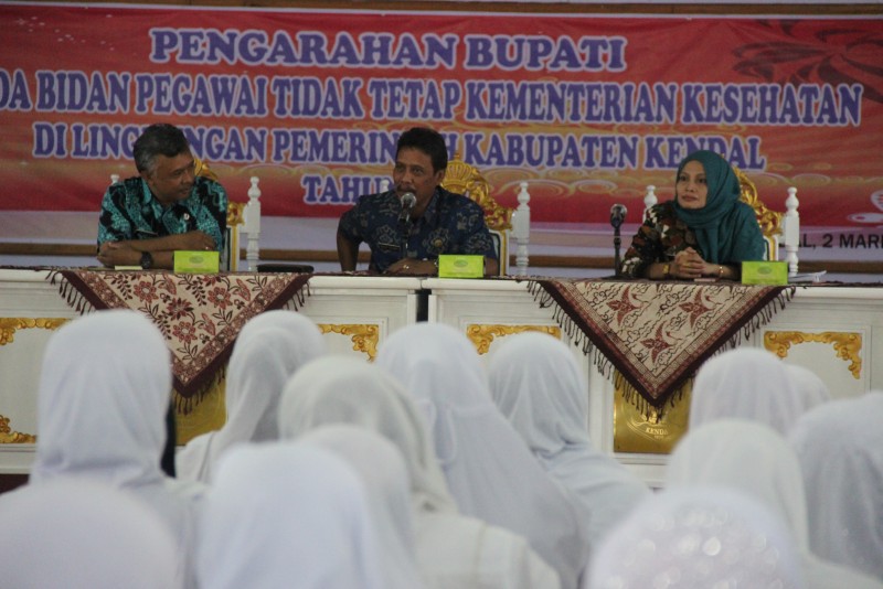 Sebanyak 135 Bidan Pegawai Tidak Tetap Kementerian Kesehatan di Lingkungan Pemerintah Kabupaten Kendal, Kamis (2/3) di pendopo kabupaten, mengikuti pengarahan dari Bupati Kendal.