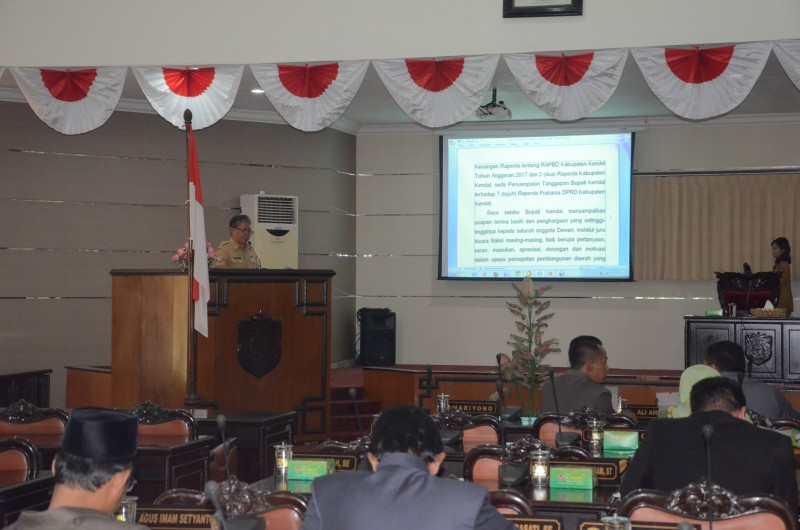 KENDAL - Dewan Perwakilan Rakyat Daerah Kabupaten Kendal menggelar Sidang Paripurna, Senin (21/11) di Ruang Sidang Paripurna dengan agenda penyampaian Jawaban Bupati Kendal dr. Mirna Anissa, M.Si atas Pemandangan Umum Fraksi -...