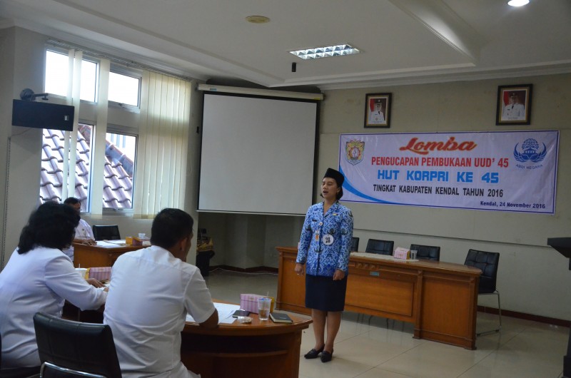 Kendal, Rangkaian Kegiatan Lomba dalam Rangka Hari Ulang Tahun Korpri ke 54, diantaranya adalah lomba pengucapan Pembukaan Undang-Undang Dasar 1945, berlangsung di Gedung C Setda Kabupaten Kendal, Kamis (24/11). Acara yang...
