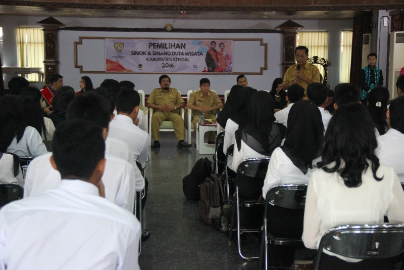 121 peserta pemilihan sinok sinang duta wisata Kabupaten Kendal, hari ini Senin (29/8) di pendopo setempat, menjalani test tertulis dan wawancara, meliputi pengetahuan umum dan bahasa Inggris.
