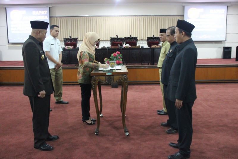 Rapat paripurna DPRD Kendal dengan agenda penandatanganan nota kesepakatan bersama Kebijakan Umum Perubahan APBD serta Prioritas dan Plafon Anggaran Sementara Perubahan APBD Kabupaten Kendal Tahun Anggaran 2016, dilaksanakan...