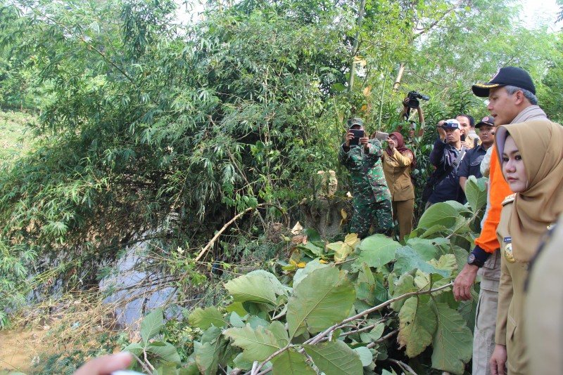 Kendal-Gubernur Jawa Tengah, Ganjar Pranowo, S.H,M.IP diidampingi Bupati Kendal, dr, Mirna Annisa, MSi, Sekda Kendal, Para Asisten dan SKPD terkait, hari ini, Senin (20/6) meninjau lokasi penyebab pangkal terjadinya banjir...