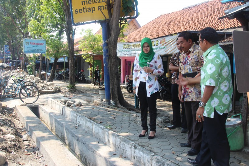 KENDAL - Sebelum meninjau bangunan Pasar Kendal dan suasana jual beli di dalamnya. Bupati Kendal dr. Mirna Anissa, M.Si, Kamis (19/5) melihat dari dekat pembangunan selokan sebagai sarana pendukung pembuangan limbah cair di...
