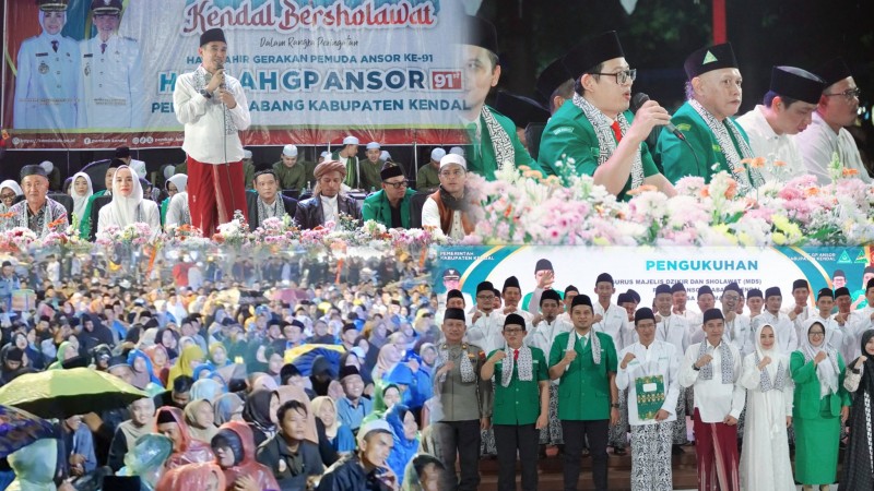 Kendal- Wakil Bupati Kendal, H. Benny Karnadi menghadiri acara Kendal Bersholawat yang digelar oleh Pimpinan Cabang Gerakan Pemuda Ansor Kendal dalam rangka Hari Lahir (Harlah) ke 91 GP Ansor, Jumat (16/5/2025) di Alun-Alun...