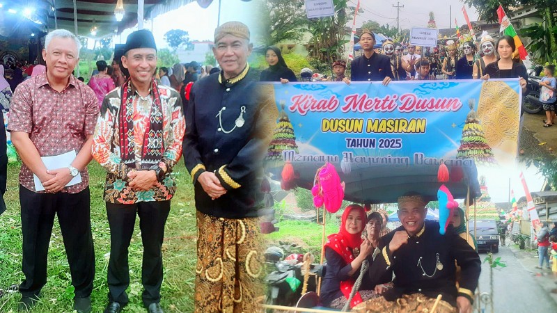 Kendal- Dusun Masiran Desa Kaligading, Kecamatan Boja menggelar merti dusun yang menampilkan kirab gunungan, Sabtu (17/5/2025).