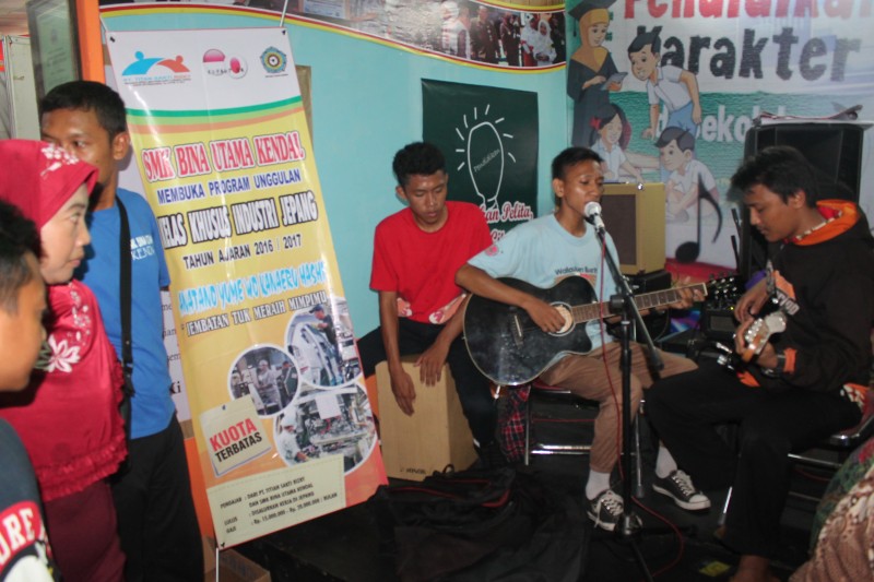 SMK Bina Utama Kendal menampilkan seni musik berupa band siswa SMK Bina Utama. Para siswa terlihat piawai memainkan alat musik di atas panggung. Terlihat juga para pengunjung yang menikmati alunan musik dan sesekali terbawa ikut menyanyikan lagu yang sedang dibawakan.