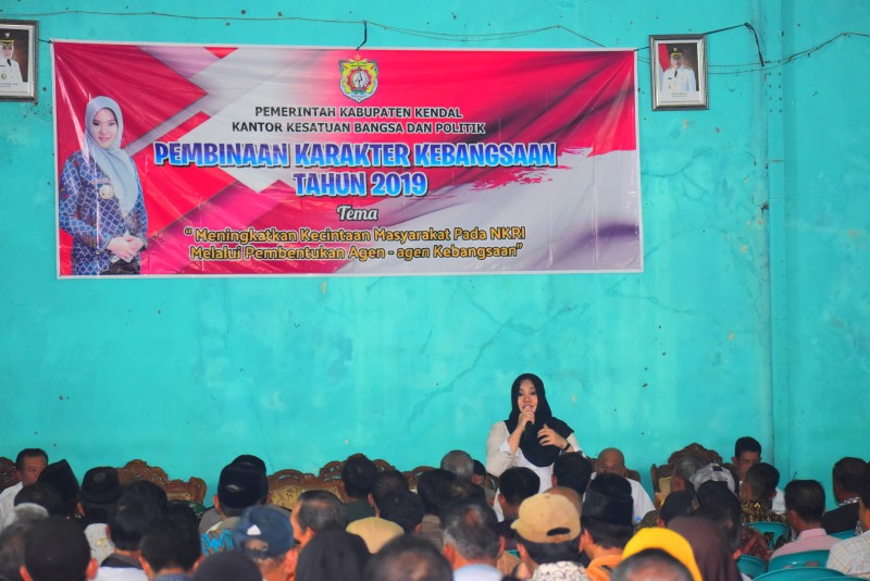 KENDAL - Bupati Kendal dr. Mirna Anissa, M.Si didampingi Wakil Bupati Drs. Masrur Masykur, dalam arahannya pada kegiatan Pembinaan Karakter Kebangsaan bertemakan "Meningkatkan Kecintaan Masyarakat Pada NKRI Melalui Pembentukan Agen - Agen Kebangsaan, Rabu (9/10/2019) di GOR Moro Tresno Kecamatan Boja, menekankan pentingnya peran aktif Ketua RT dan RW dalam dalam mendukung visi dan misi pembangunan Pemerintah Kabupaten Kendal.