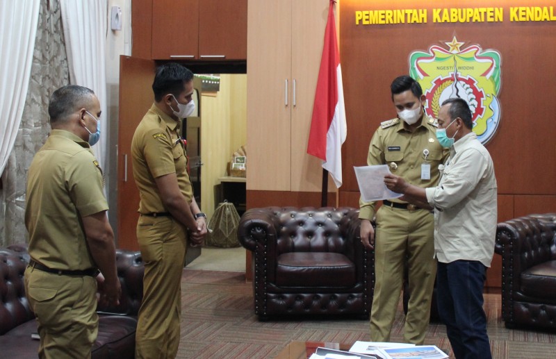 Kendal- Tim Penelitian pada Pusat Penelitian Arkeologi Nasional (Puslitarkenas) Kementerian Pendidikan dan Kebudayaan (Kemendikbud) melakukan audiensi dengan Pemerintah Kabupaten Kendal, Senin (26/04/2021) bertempat di Ruang Kerja Bupati Kendal.