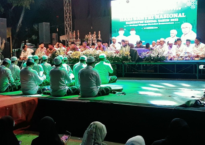 Kendal- Dalam rangka puncak peringatan Hari Santri Nasional, Pemerintah Kabupaten Kendal menggelar acara Pengajian Umum Sholawat Bersama Az Zahir Pekalongan, Kamis (26/10/2022) di Alun-Alun Kabupaten Kendal.