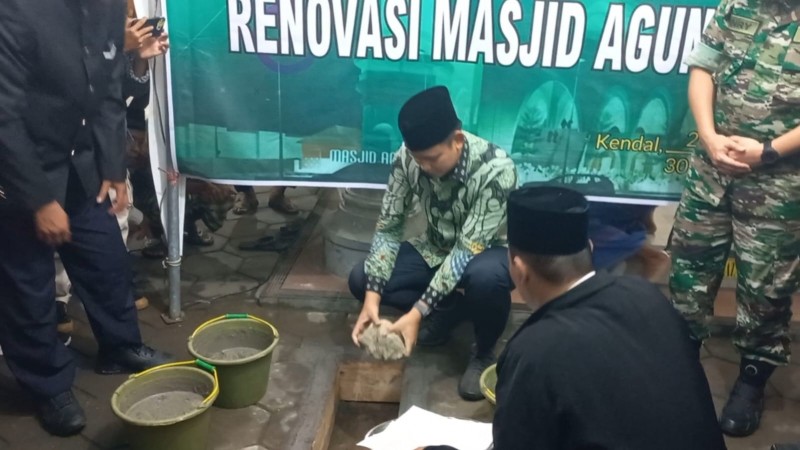 Kendal- Bupati Kendal, H. Dico M. Ganinduto, B.Sc menghadiri acara peletakan batu pertama revitalisasi pembangunan Masjid Agung Kendal, Sabtu malam (24/12/2022) di area Masjid Agung Kendal.