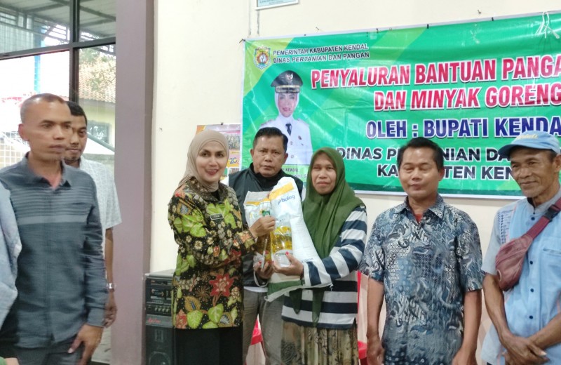 KENDAL- Bupati Kendal Dyah Kartika Permanasari menyalurkan bantuan pangan berupa beras dan minyak goreng kepada warga di Kecamatan Limbangan menjelang Hari Raya Idulfitri, Jumat (13/03/2026).