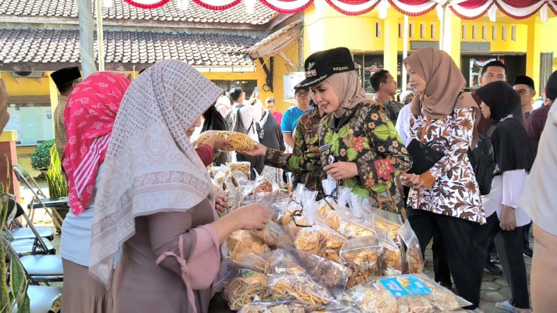 KENDAL %u2013 Bupati Kendal, Hj. Dyah Kartika Permanasari meninjau kegiatan Pasar Murah Idul Fitri yang digelar di halaman Kantor Kecamatan Pageruyung, Jumat (13/3/2023).