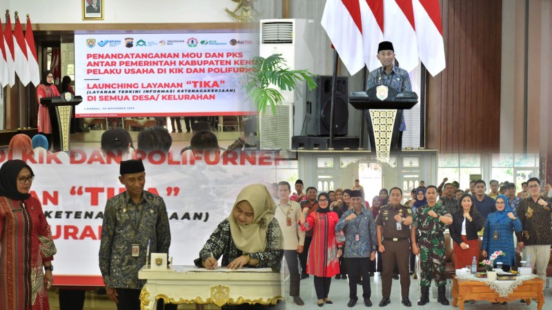 Kendal- Pemerintah Kabupaten Kendal melalui Dinas Perindustrian dan Tenaga Kerja melakukan Penandatanganan MoU dan Perjanjian Kerjasama dengan Pelaku Usaha di Kawasan Industri Kendal, Polifurneka Kementrian Perindustrian,...