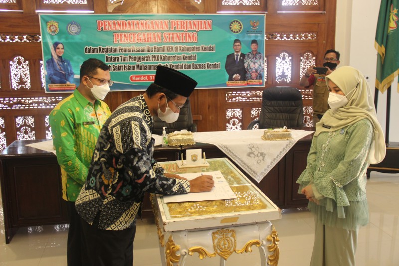 Kendal - Tim Penggerak PKK Kabupaten Kendal melakukan penandatanganan perjanjian kerja sama dengan Baznas Kendal dan Rumah Sakit Islam (RSI) Kendal terkait pemeriksaan Kekurangan Energi Kronik (KEK) bagi ibu hamil secara...