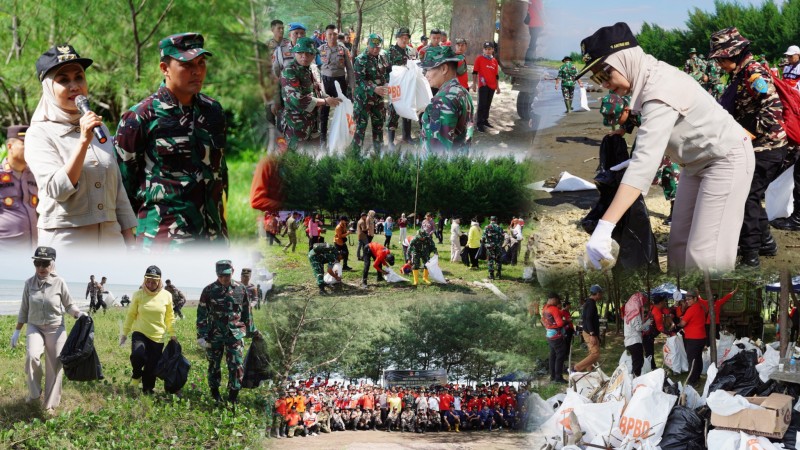 Kendal - Kodim 0715 Kendal bersama Pemerintah Kabupaten Kendal serta organisasi kemasyarakatan melaksanakan bersih-bersih Pantai Muara Kencana Patebon, Sabtu (20/9/2025).