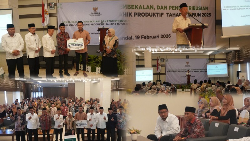 Kendal- Badan Amil Zakat Nasional (Baznas) Provinsi Jawa Tengah salurkan bantuan modal usaha kepada ratusan Mustahik, Kamis (19/2/2026) di Aula Hotel Sae Inn Kendal.