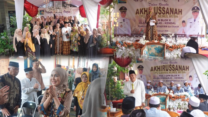 Kendal- Bupati Kendal, Hj. Dyah Kartika Permanasari hadiri Akhirusanah TPQ Lansia Nurul Huda Kendal, Jumat (13/2/2026) di Perumahan Griya Prajamukti Kelurahan Langenharjo, Kecamatan Kendal.