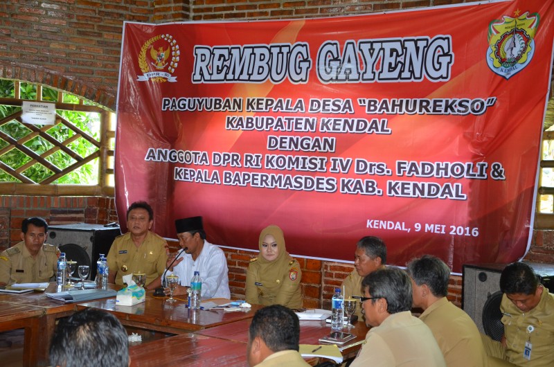 KENDAL - Anggota DPR RI asal Kendal Drs. Fadholi dengan didampingi Bupati Kendal dr. Mirna Anissa, Msi memberikan pengarahan pada para wakil kepala desa dari 19 Kecamatan di Kabupaten Kendal dalam gelar " Rembug Gayeng " ,...