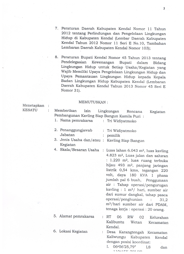 Izin Lingkungan KSB Kamila Puri