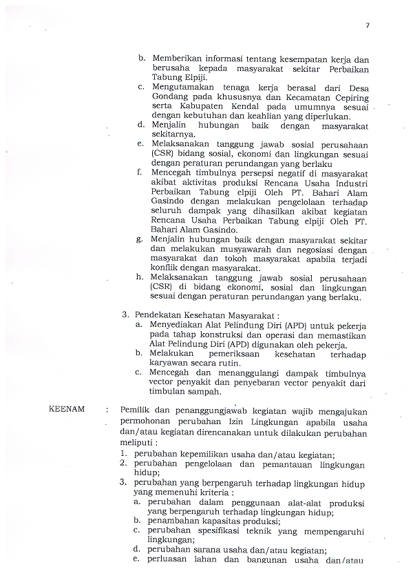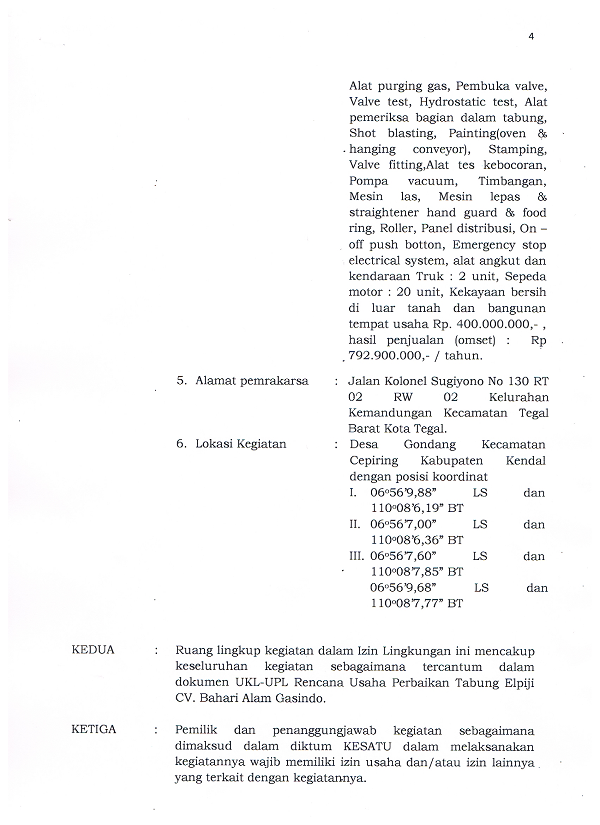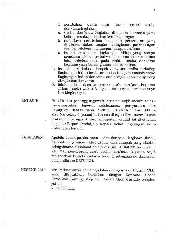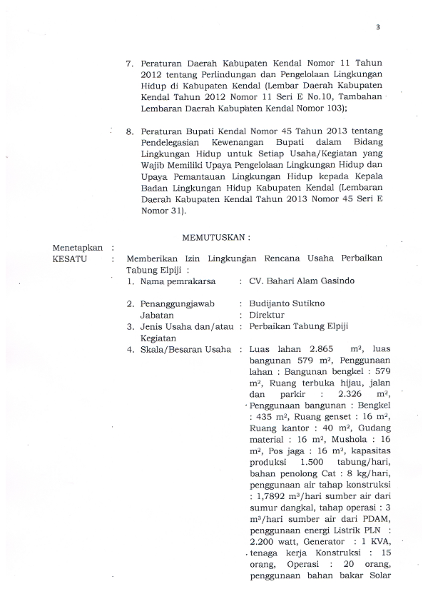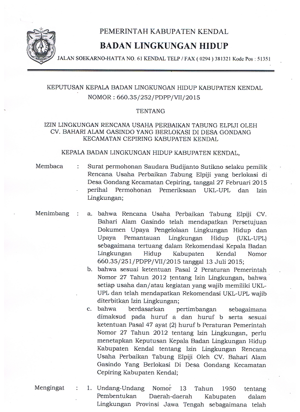 Izin Lingkungan CV. Bahari Alam Gasindo